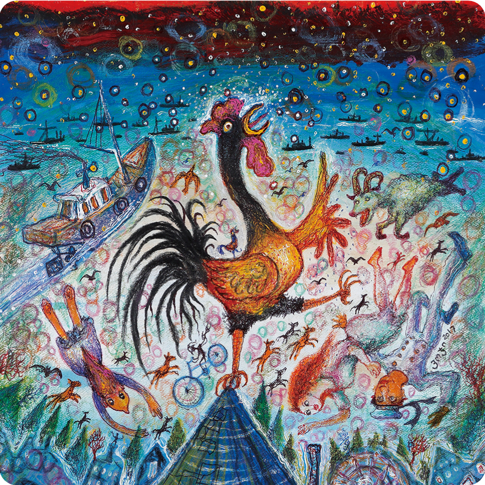 京都府生まれ。主な作品に『ジンガくんいちばへいく』『ふたごのゴリラ』(以上、福音館書店)、『ヤクシマザルを追って』(野草社)、『コーヒーを飲んで学校を建てよう』(実生社)など。カレンダーの絵は上関のカンムリウミスズメ。5月頃は親子の姿が見られます。瀬戸内海の原風景を残す奇跡の海といわれる上関には原発建設、使用済み核燃料の中間貯蔵施設の計画があります。