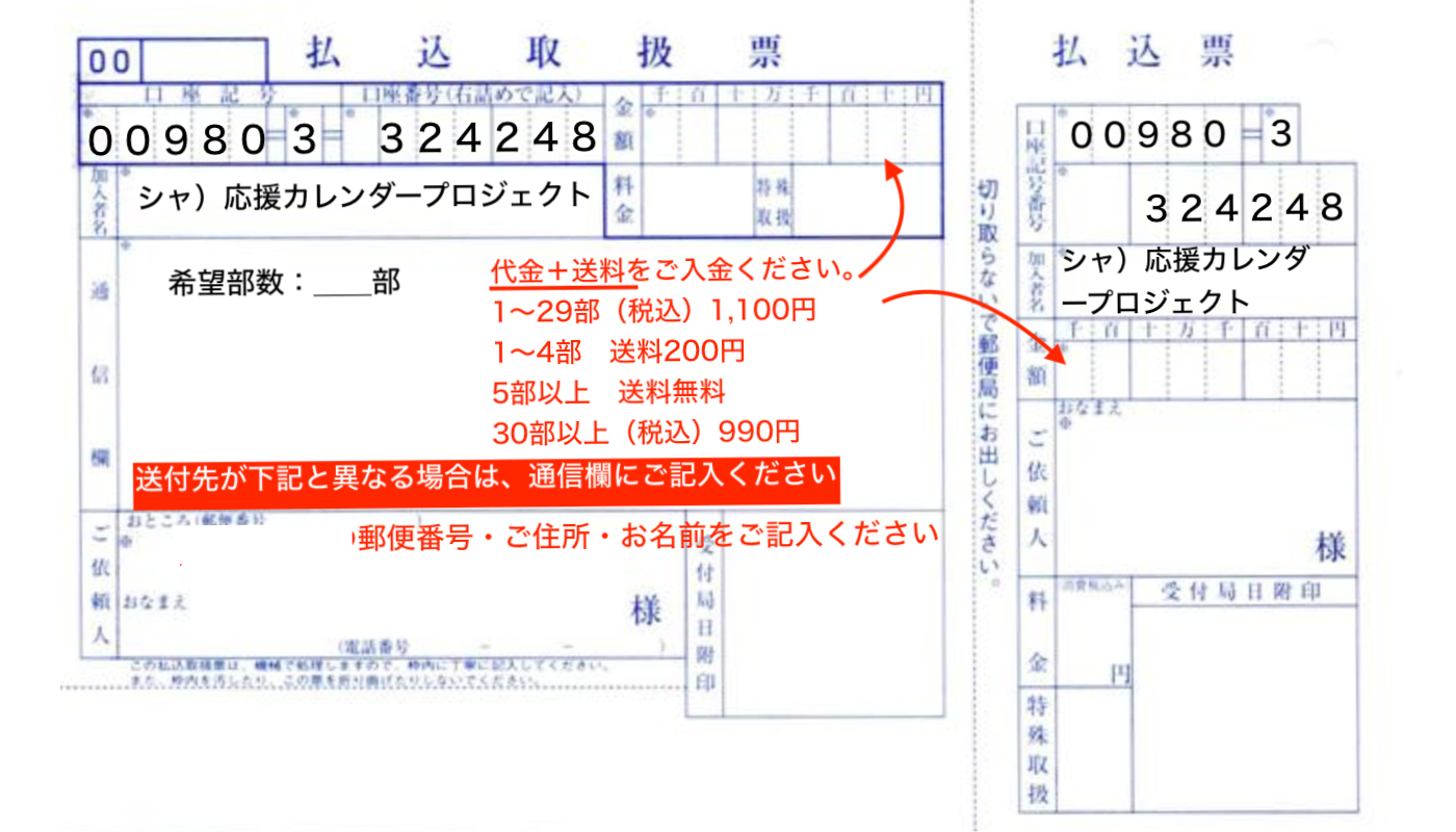 郵便振替用紙専用 お申込み方法下記のような、郵便振替用紙が郵便局に備え付けられています。